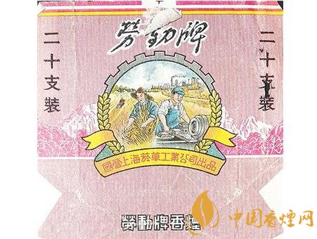 國(guó)營(yíng)上海煙草工業(yè)公司率先將“老刀牌”卷煙改成“勞動(dòng)牌”卷煙,并把工農(nóng)聯(lián)盟作為主版主圖,把當(dāng)時(shí)的流行語(yǔ)“勞動(dòng)創(chuàng)造世界”印在副版上。隨后,該煙標(biāo)再次改為以麥穗和齒輪為基礎(chǔ),工農(nóng)勞動(dòng)者手持鐮刀、鐵錘站在地平線(xiàn)上的畫(huà)面。當(dāng)時(shí),以工農(nóng)勞動(dòng)者、工農(nóng)兵為主題的各種作品活躍在各廠(chǎng)煙標(biāo)上,如北京卷煙廠(chǎng)出品的“工農(nóng)”,國(guó)營(yíng)濟(jì)南卷煙總廠(chǎng)出品的“工農(nóng)兵”等。