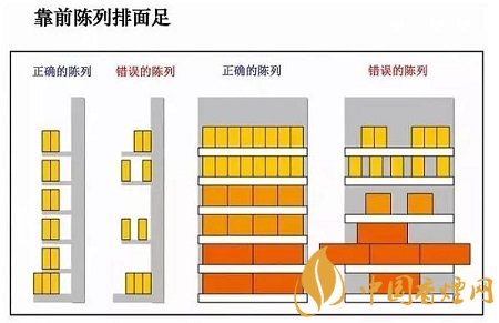 與擺放整齊的目的一樣,靠前陳列能較好地展示商品形成量感和美感,充分利用陳列工具來增強(qiáng)陳列效果。如下圖所示: