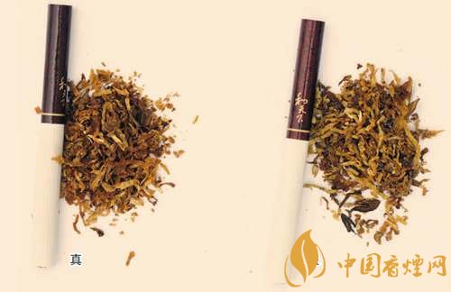 真煙煙支采用復(fù)合濾嘴,煙絲切絲寬度均勻,煙絲疏松、光澤油潤性好、呈檸檬黃色,煙絲結(jié)構(gòu)為葉絲和少量膨脹梗絲;假煙煙支采用普通濾嘴,制絲工藝簡單,煙絲寬度不均勻,有少量梗絲,未經(jīng)過膨脹處理。